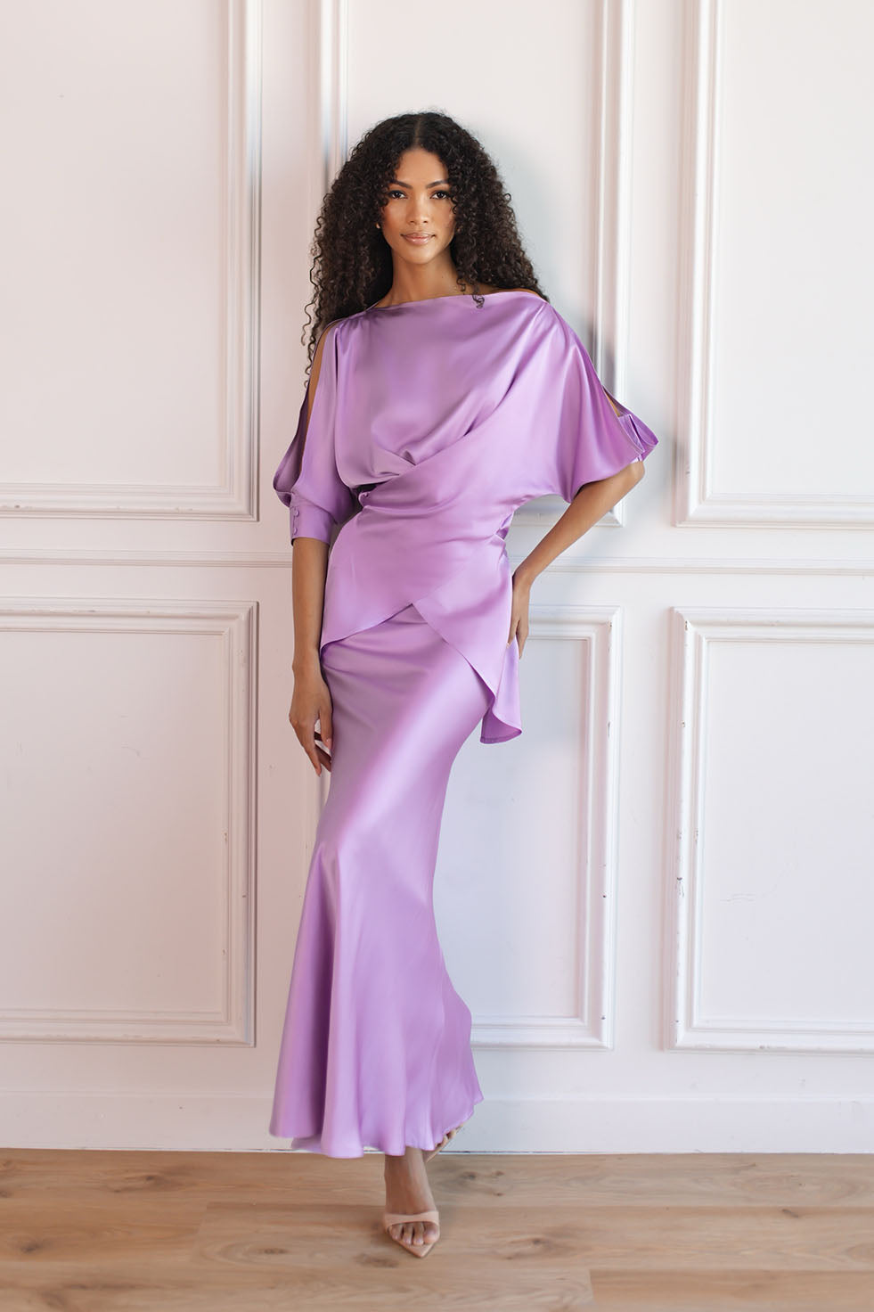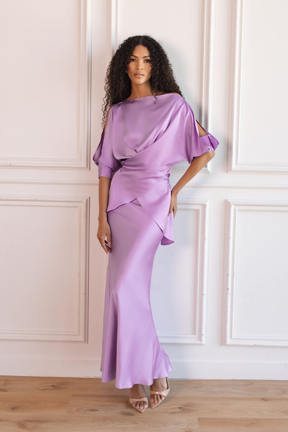 MARCY SATIN MAXI SKIRT - CHAMPAGNE