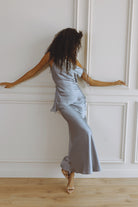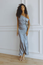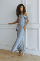 Chic and effortlessly elegant, the Darcy Satin Top is crafted in a soft silver satin that glides beautifully against the skin. Featuring a modern one-shoulder neckline with delicate side ties, it drapes fluidly for a refined finish. A self-tie belt at the back cinches the waist, allowing you to create a flattering, feminine silhouette. Perfect for pairing with our Darcy maxi skirt, this versatile piece transitions seamlessly from day to evening.