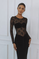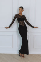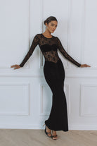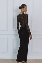 HELENIE VELOUR LACE MAXI DRESS - BLACK
