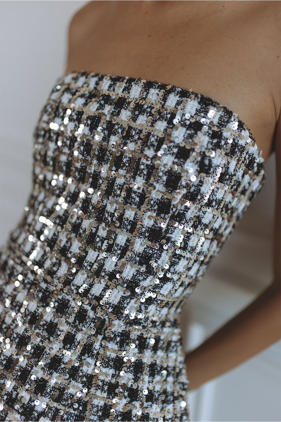 - Mini Skort Romper in Sequined Tweed