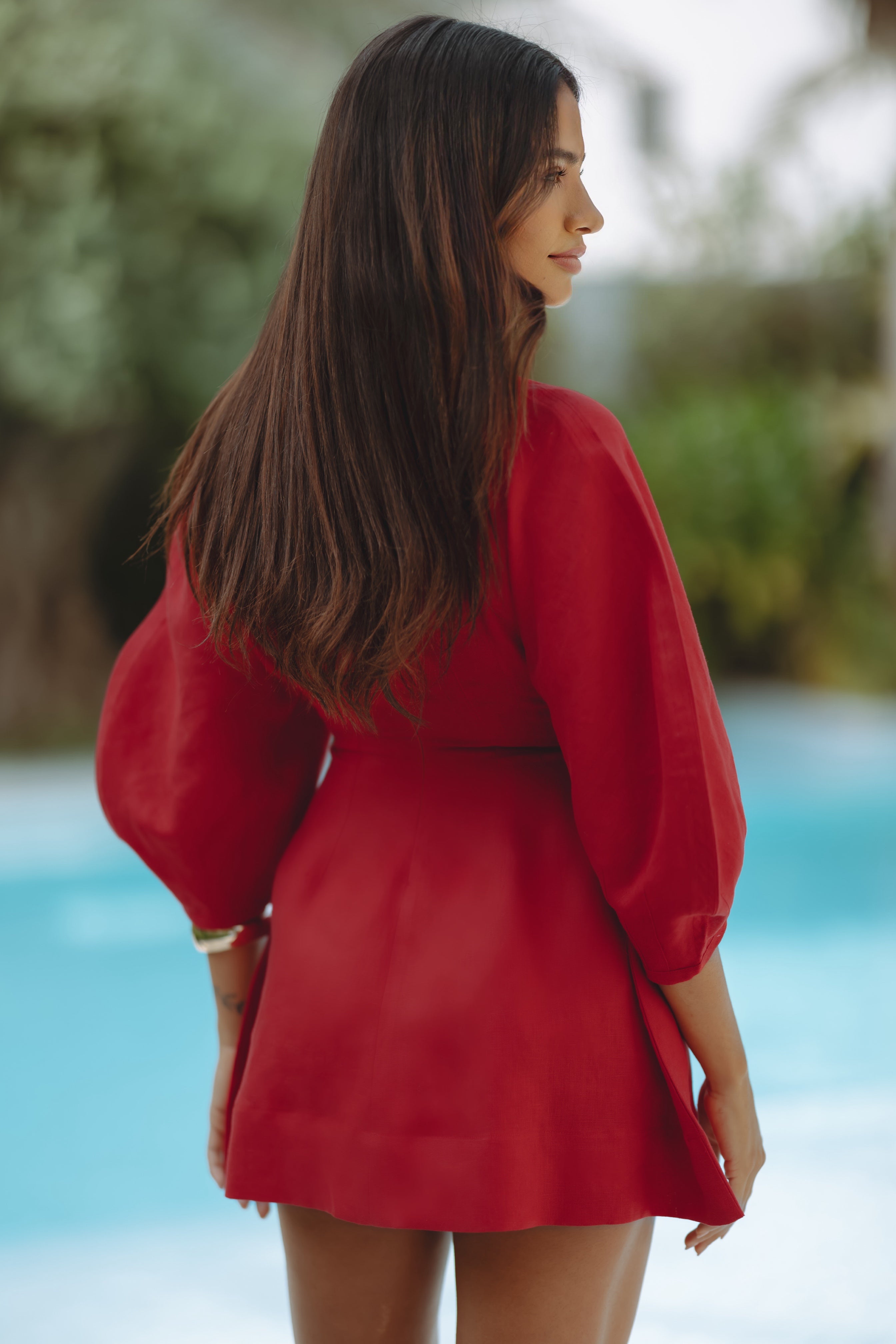 YAOURA LINEN MINI DRESS - RED
