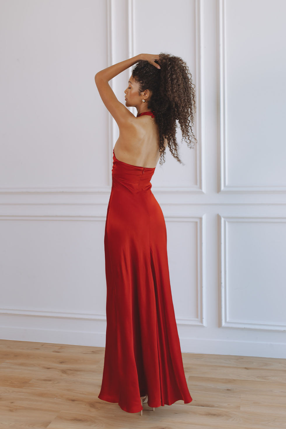 MAGDALENE HALTER DRESS - DEEP RED