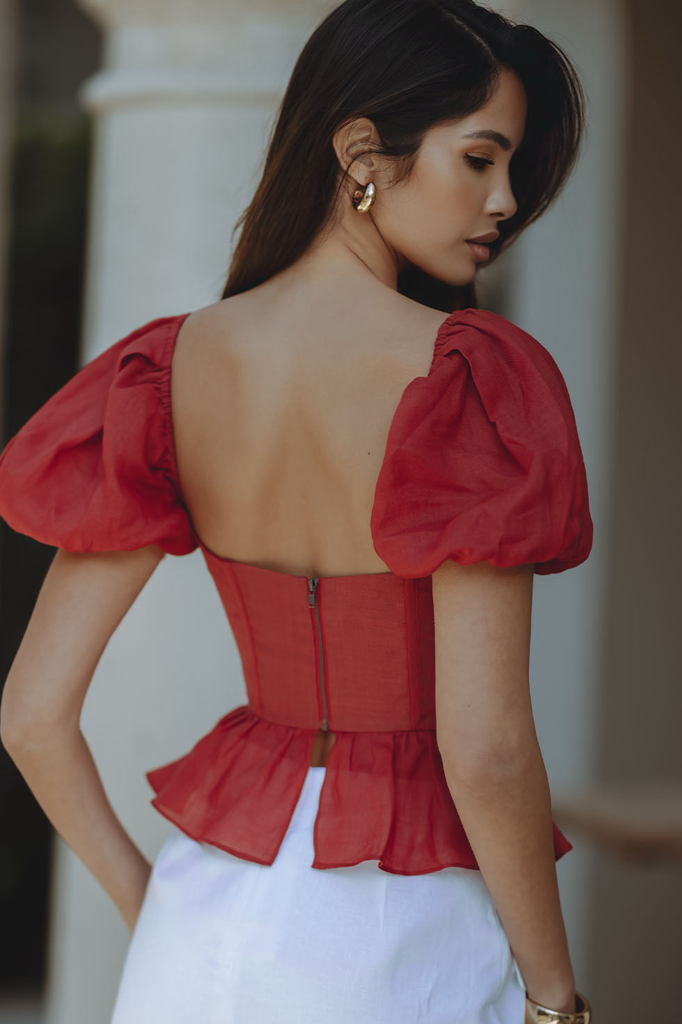 ESRA PUFF SLEEVE CORSET TOP - FIRE RED