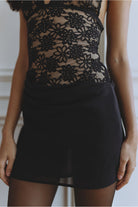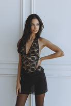 LINA HALTER DRAPED MINI DRESS - BLACK