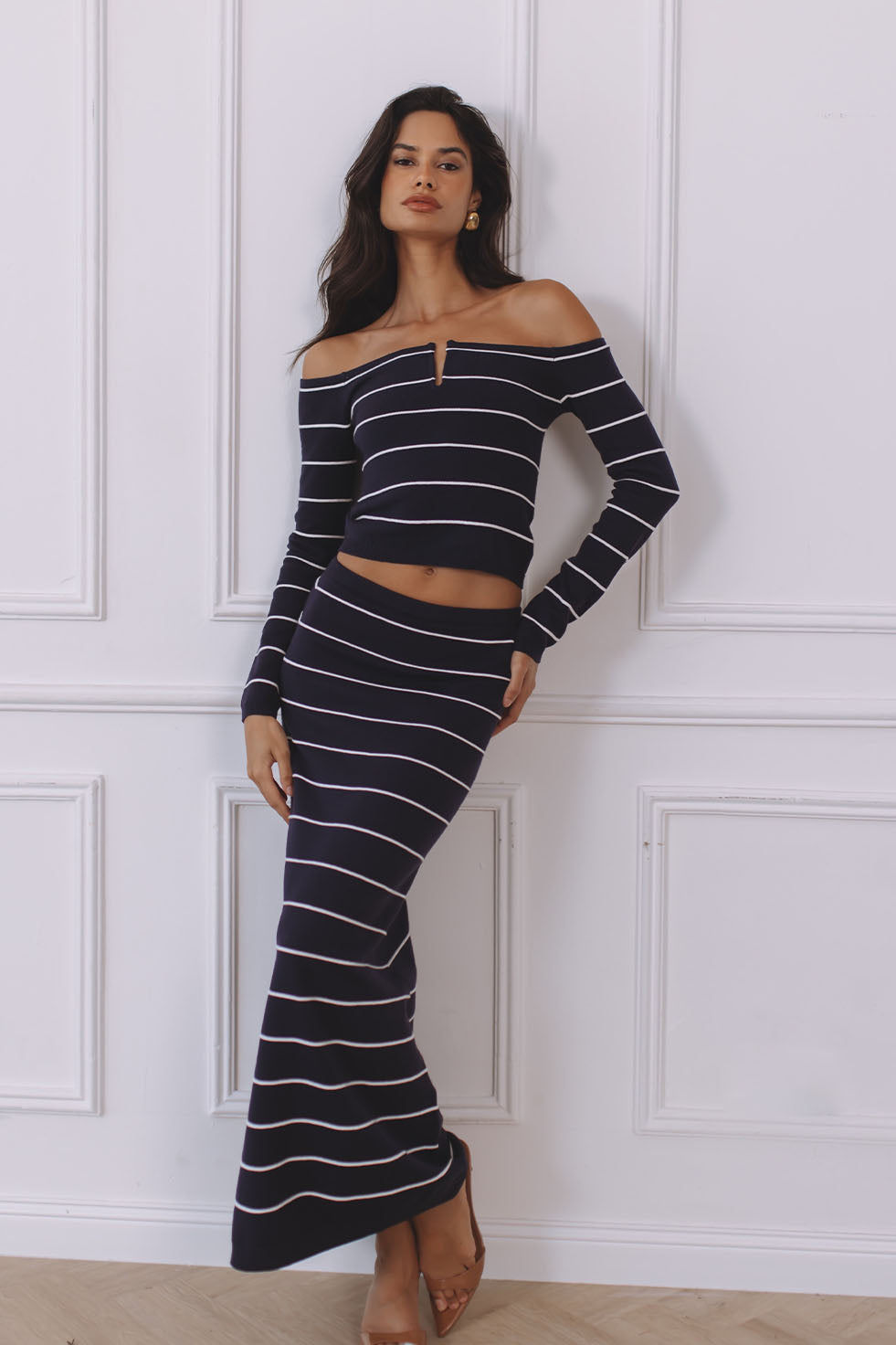 ANYA KNIT MAXI SKIRT - NAVY STRIPE