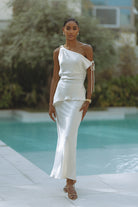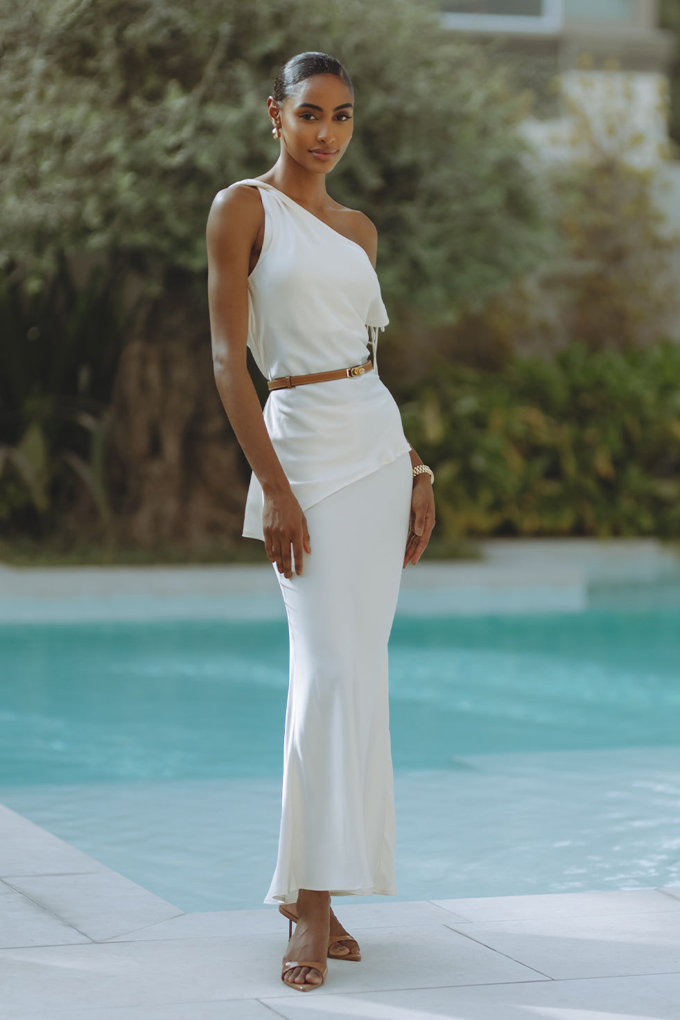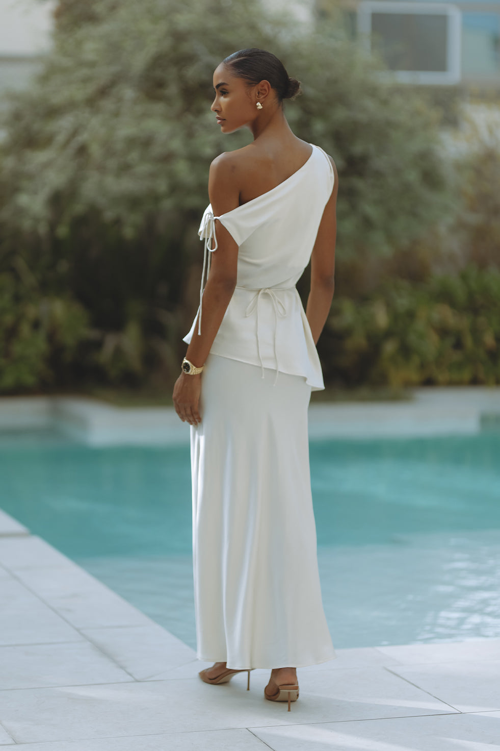 DARCY SATIN MAXI SKIRT - OFF WHITE