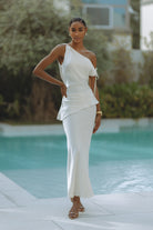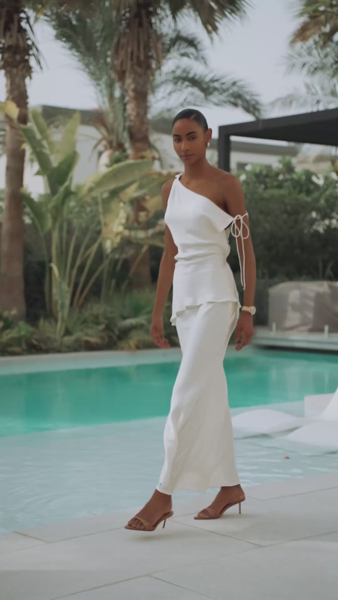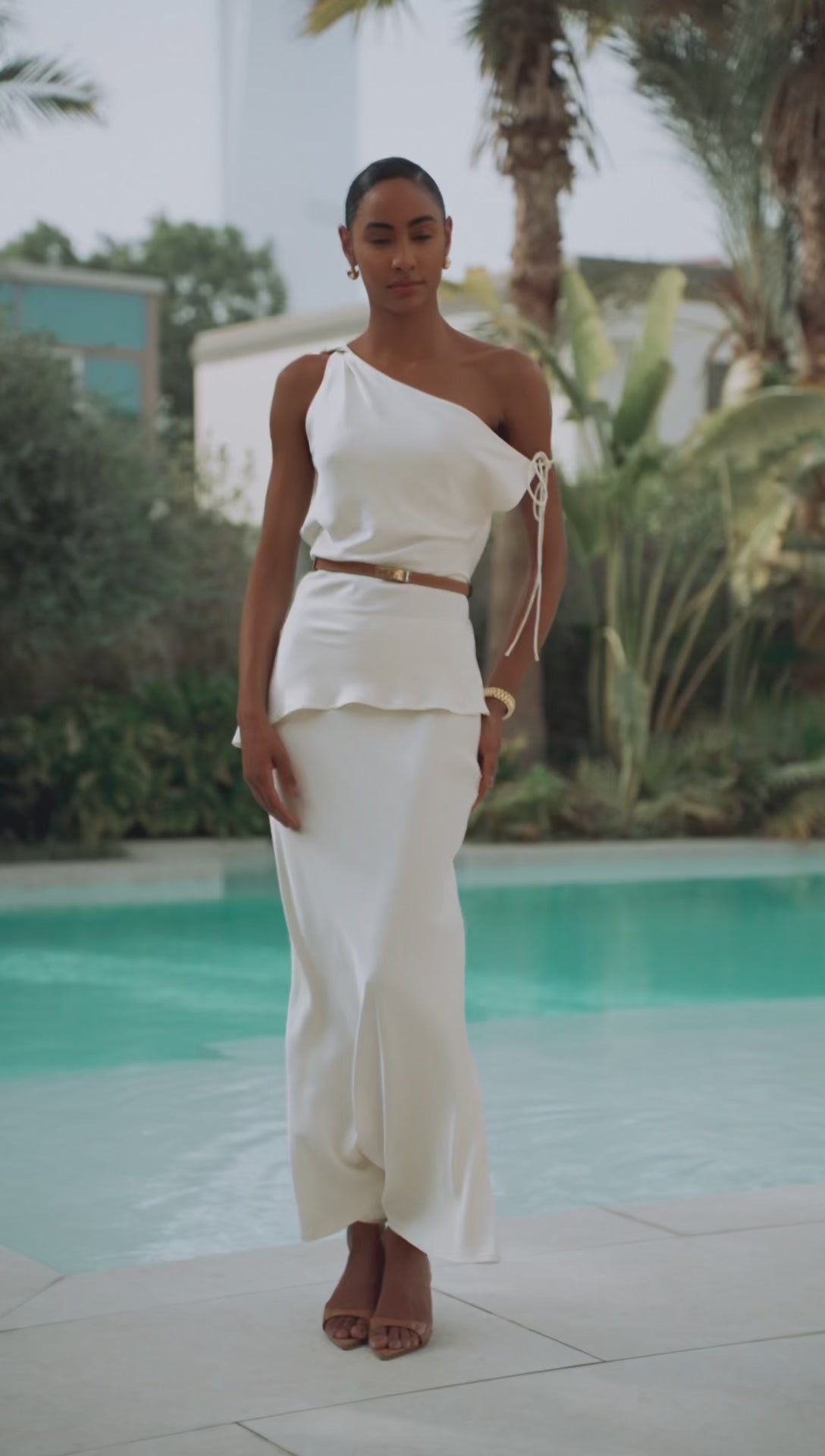 Sleek and versatile, the Darcy Drawstring Maxi Skirt is cut from fluid off white satin for a refined, elegant flow. Featuring a flattering drawstring waistband, it allows you to style it high-waisted for a polished look or mid-rise for relaxed sophistication. The softly flared hemline enhances movement, making it the perfect companion to the matching Darcy Satin Top or your favorite separates. A timeless piece that transitions effortlessly from day to evening.