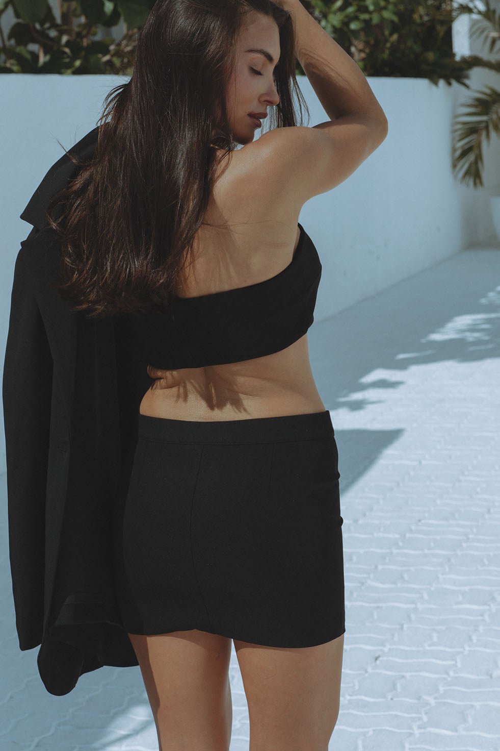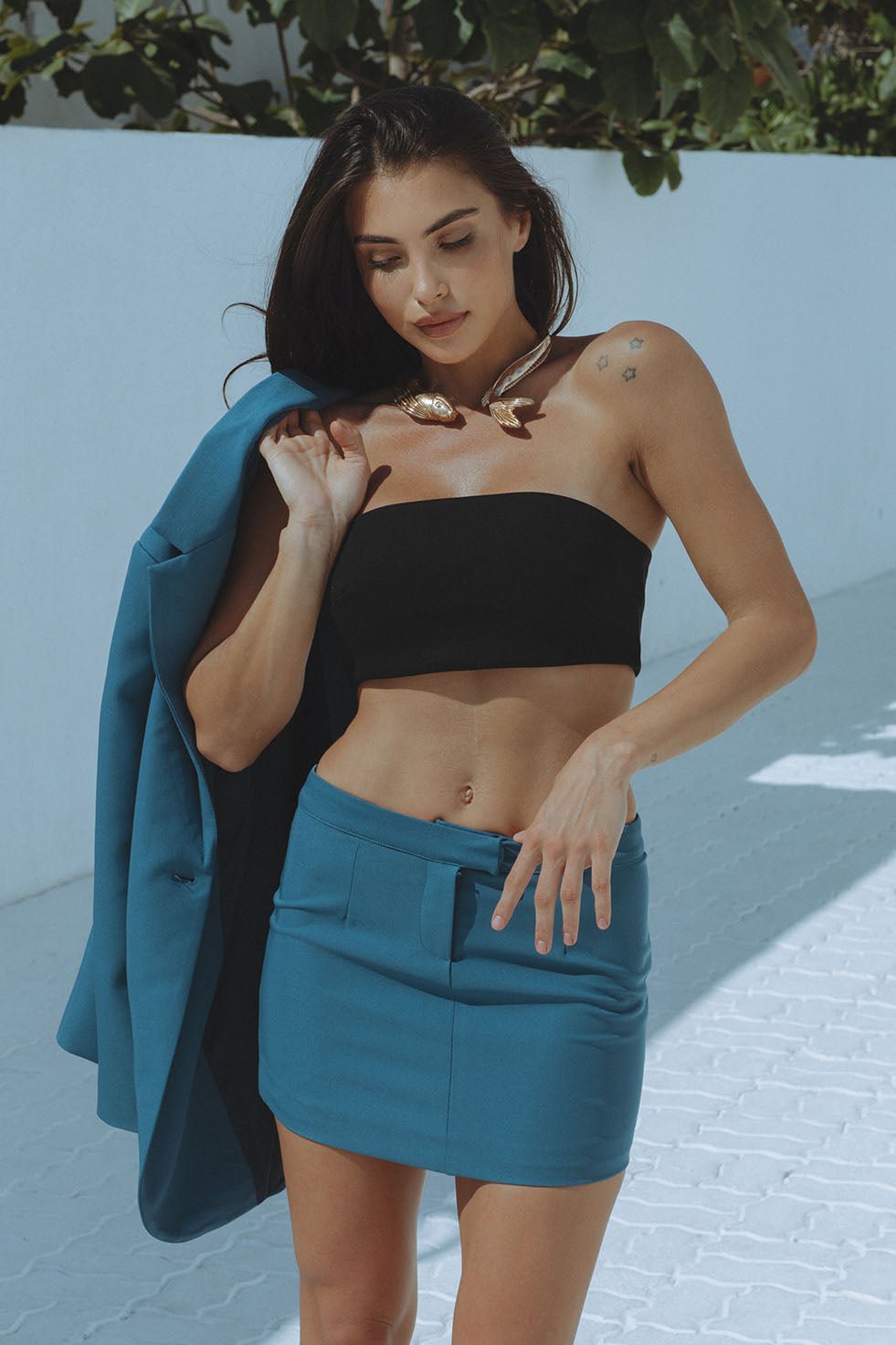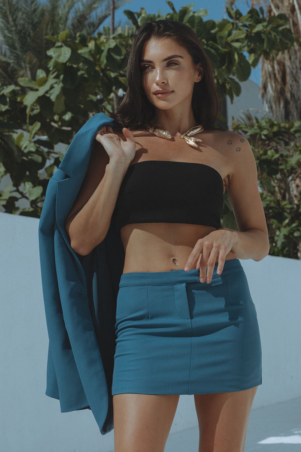 Pair your long skirt with a tank tee and crop jacket for a bold and fierce look.
