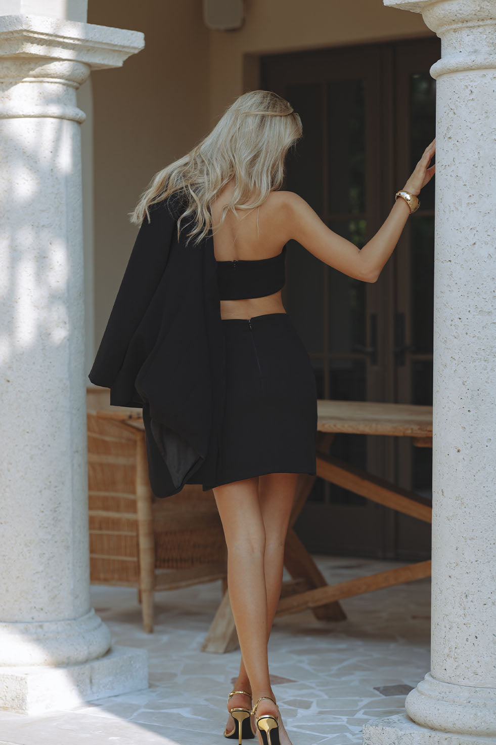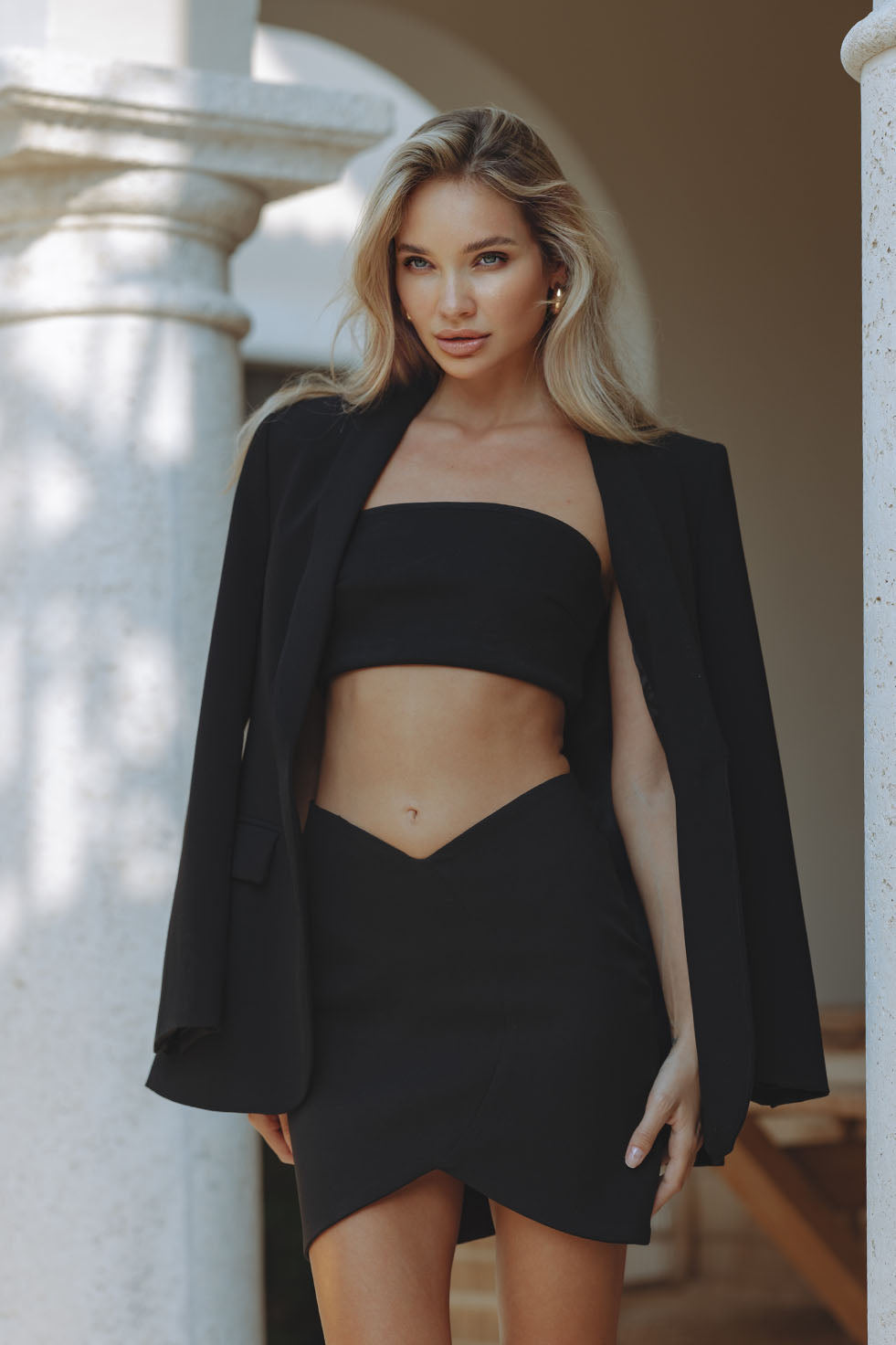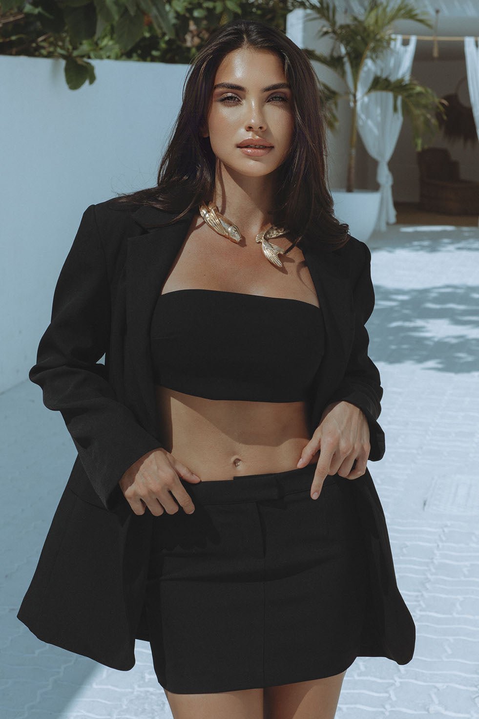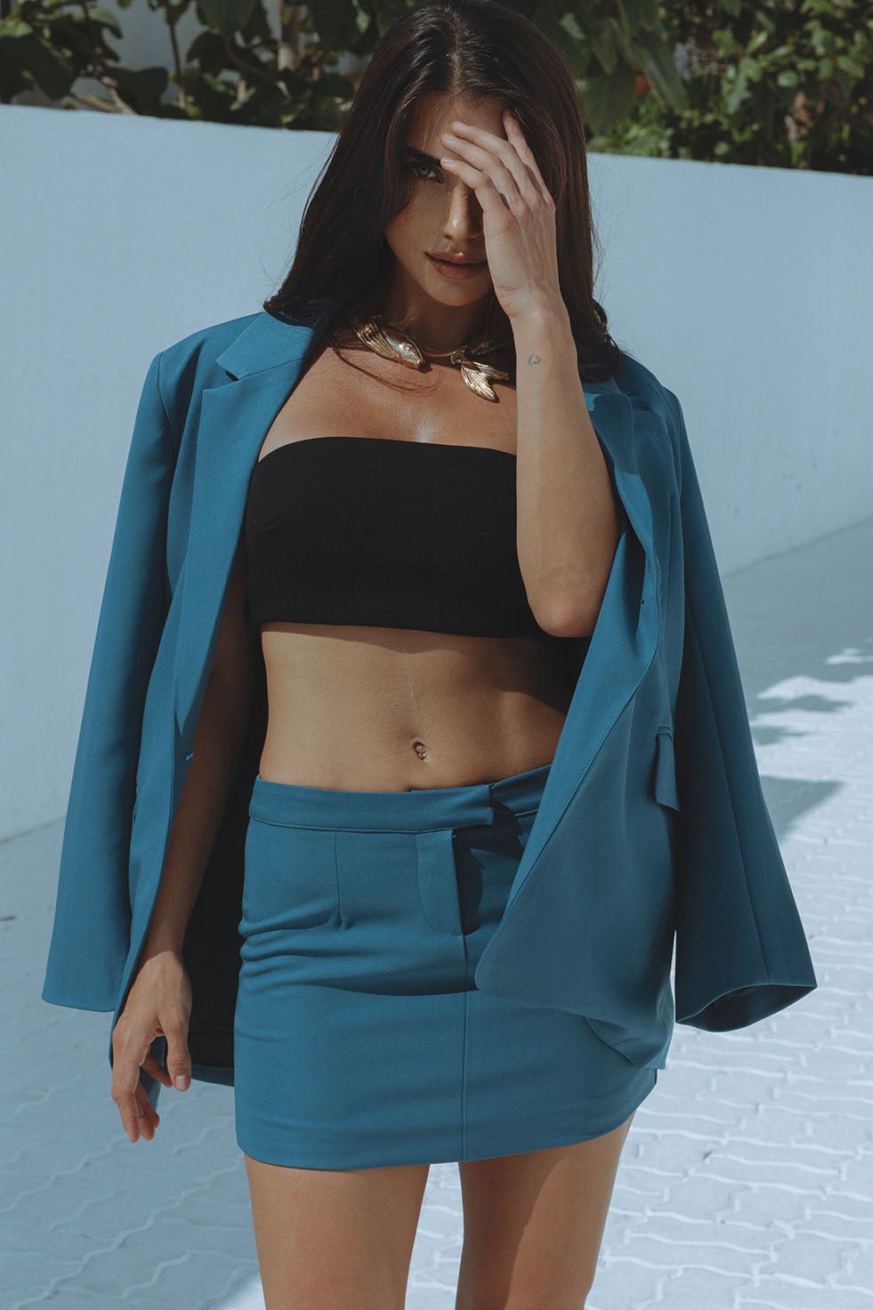Pair your long skirt with a tank tee and crop jacket for a bold and fierce look.