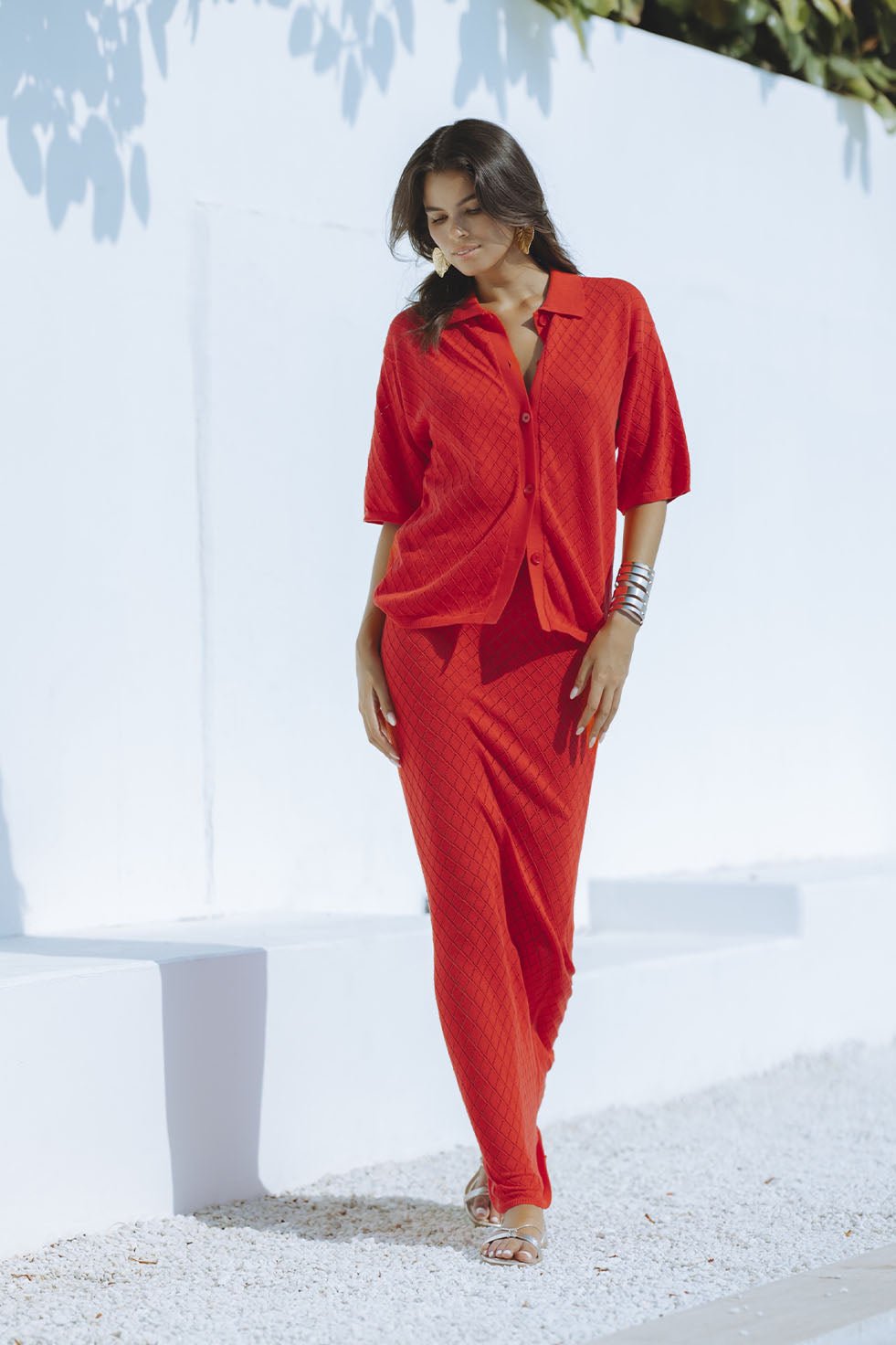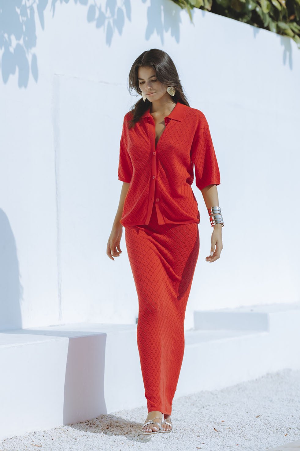 You can wear a maxi skirt with a shirt tucked in for a look ideal for a lunch date with family and friends.