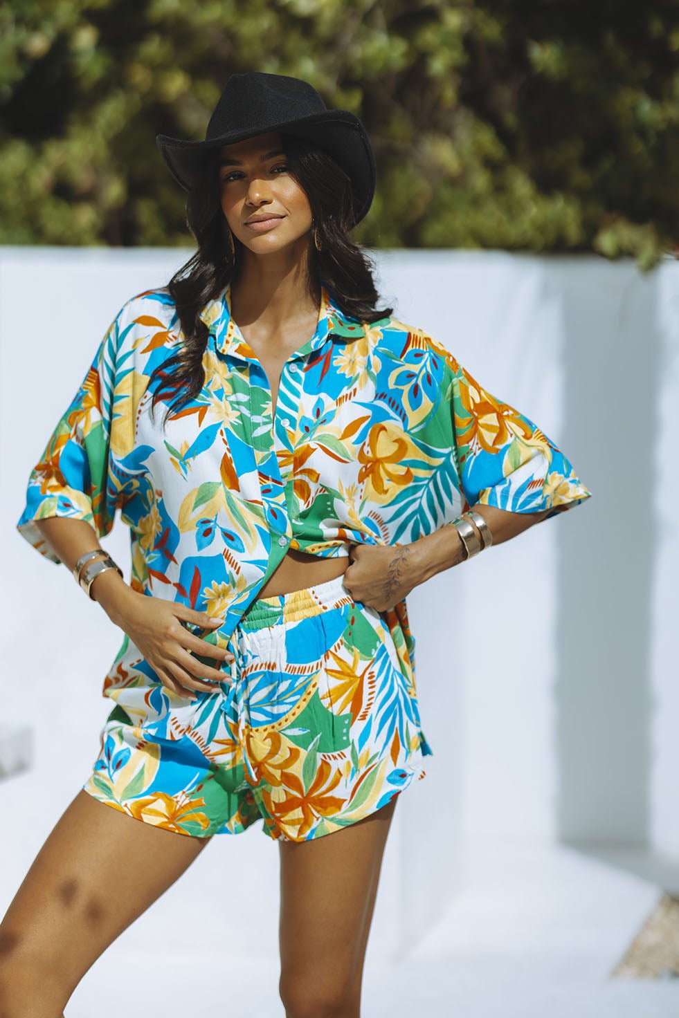 Boost your road trip game with the Venus shirt in Malta Green. Its oversized fit and short sleeves provide comfort and style, while the centre front buttons add a touch of chic. Made without stretch, it pairs perfectly with the Venus shorts. Get ready for your next adventure in style.