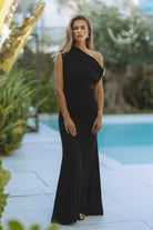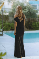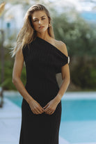 The Arden Knit Maxi Dress is a statement in understated elegance. Designed in a sleek, figure-skimming silhouette, this one-shoulder maxi is crafted from a soft, fluid knit that drapes effortlessly over the body. The asymmetric neckline is accented with a sculptural gold trim detail at the shoulder, adding a touch of modern glamour.