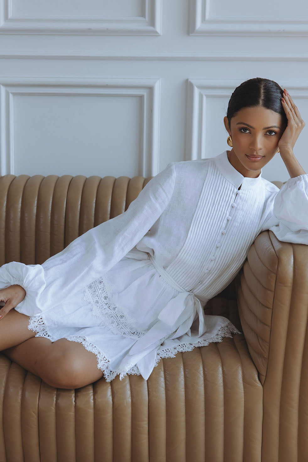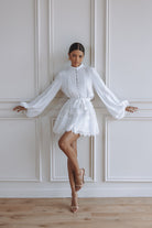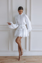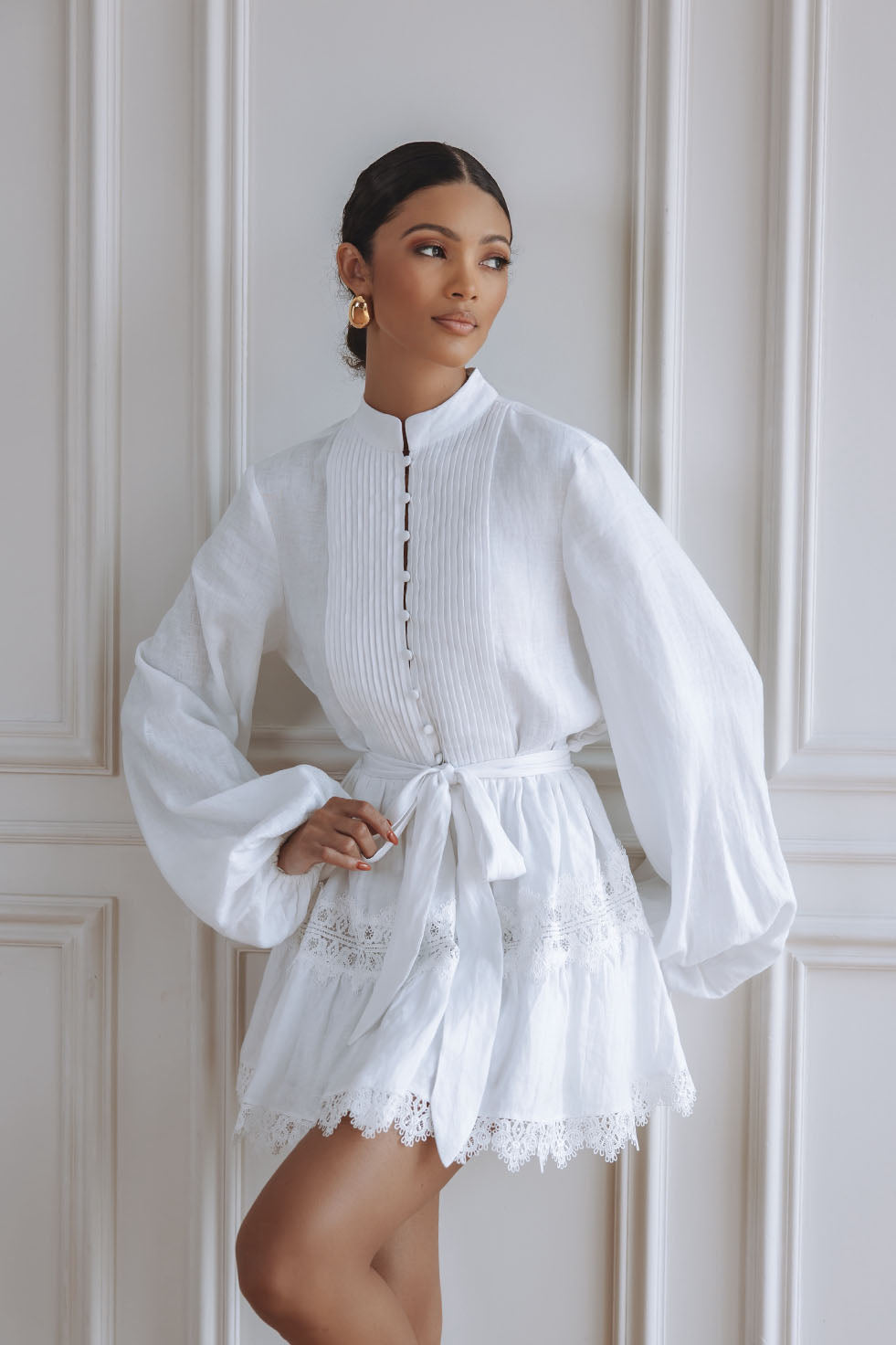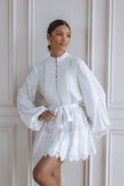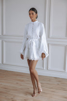AURELIE LACE TRIM LINEN MINI DRESS - ORCHID WHITE