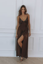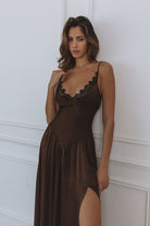 ADERIA LACE DETAIL MAXI DRESS - DARK CHOCOLATE