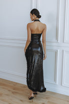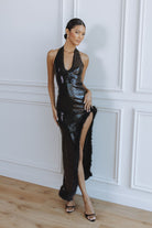 COURTNEY FAUX FUR TRIM MAXI DRESS - BLACK