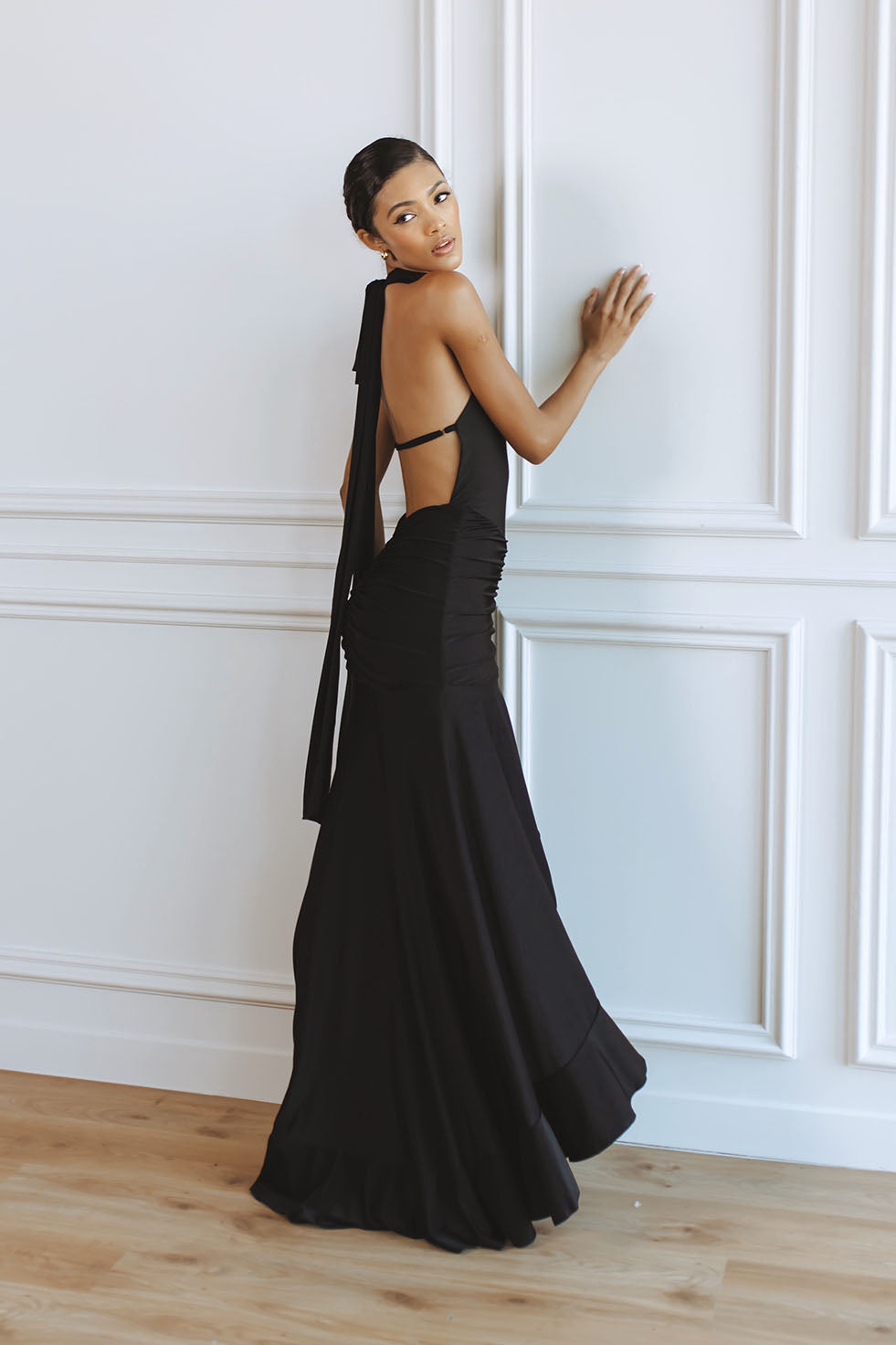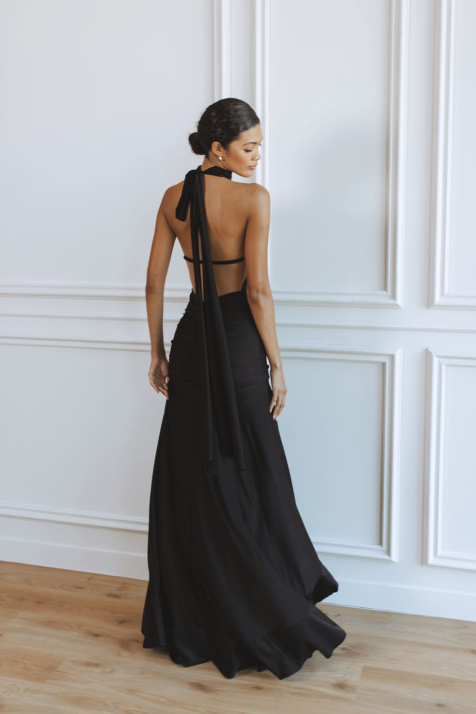 ZELMA HIGH NECK MAXI DRESS - BLACK