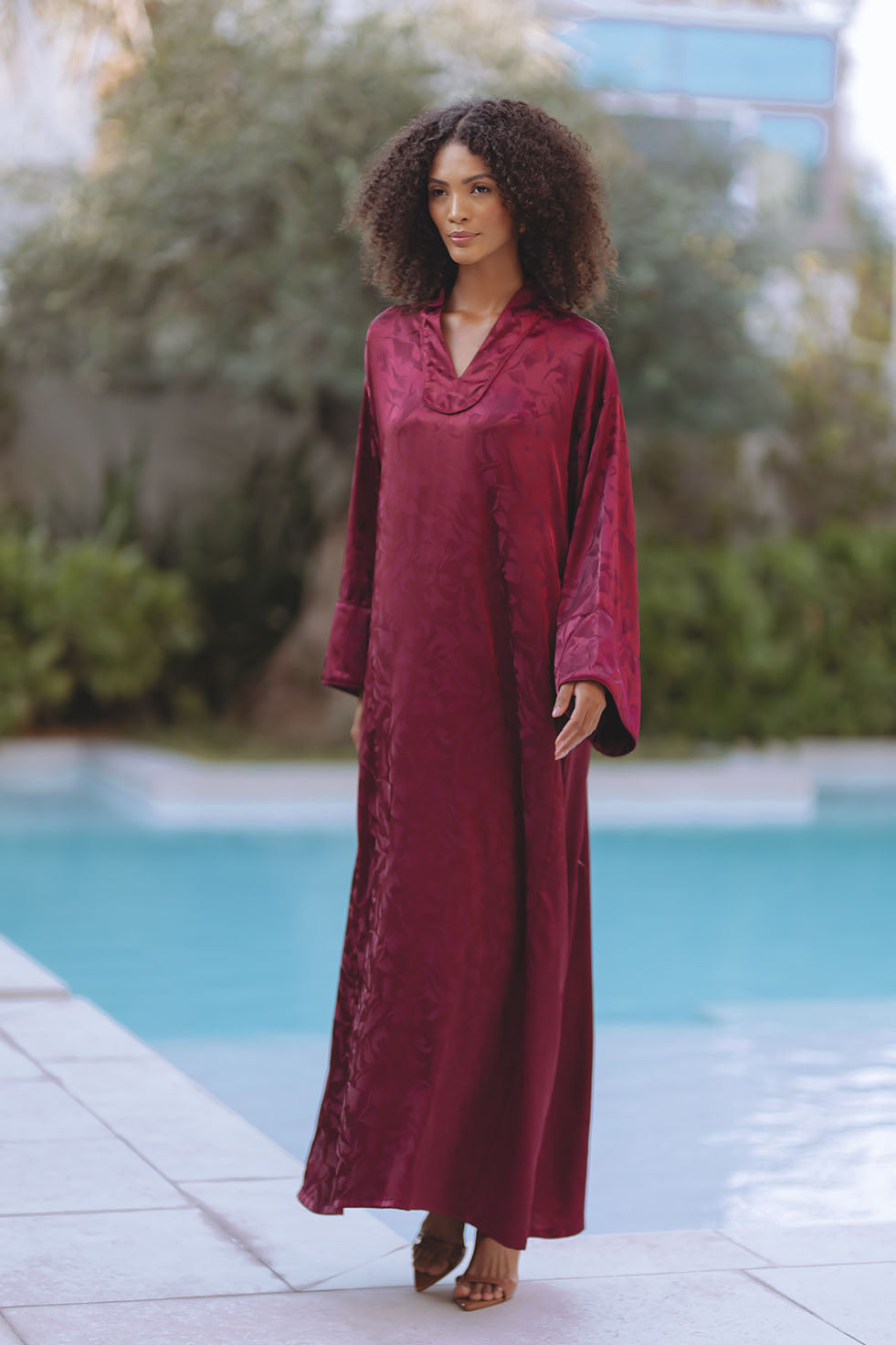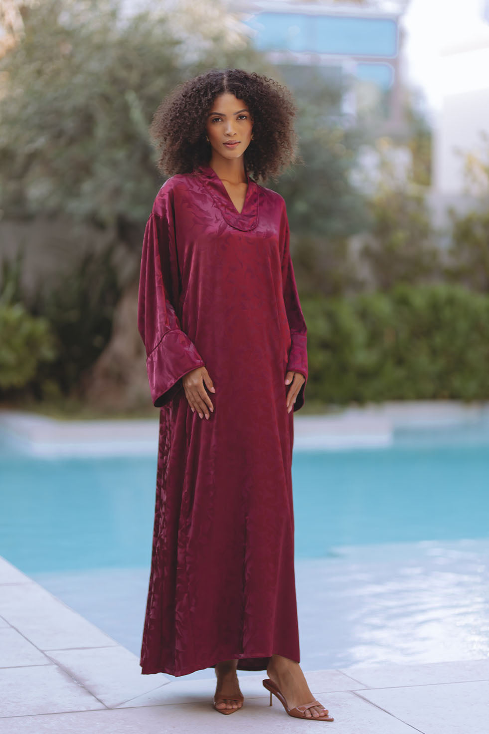 AMIYA JACQUARD KAFTAN - BURGUNDY