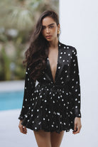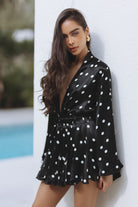 ATHENA SATIN SET - BLACK/IVORY POLKA