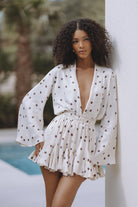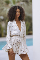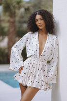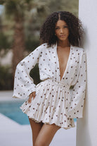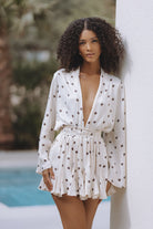 ATHENA SATIN SET - IVORY/BROWN POLKA