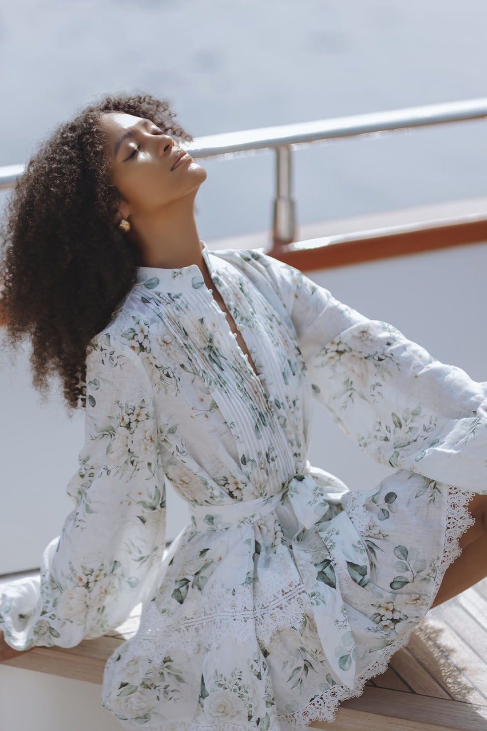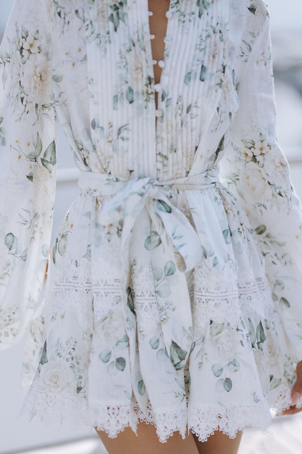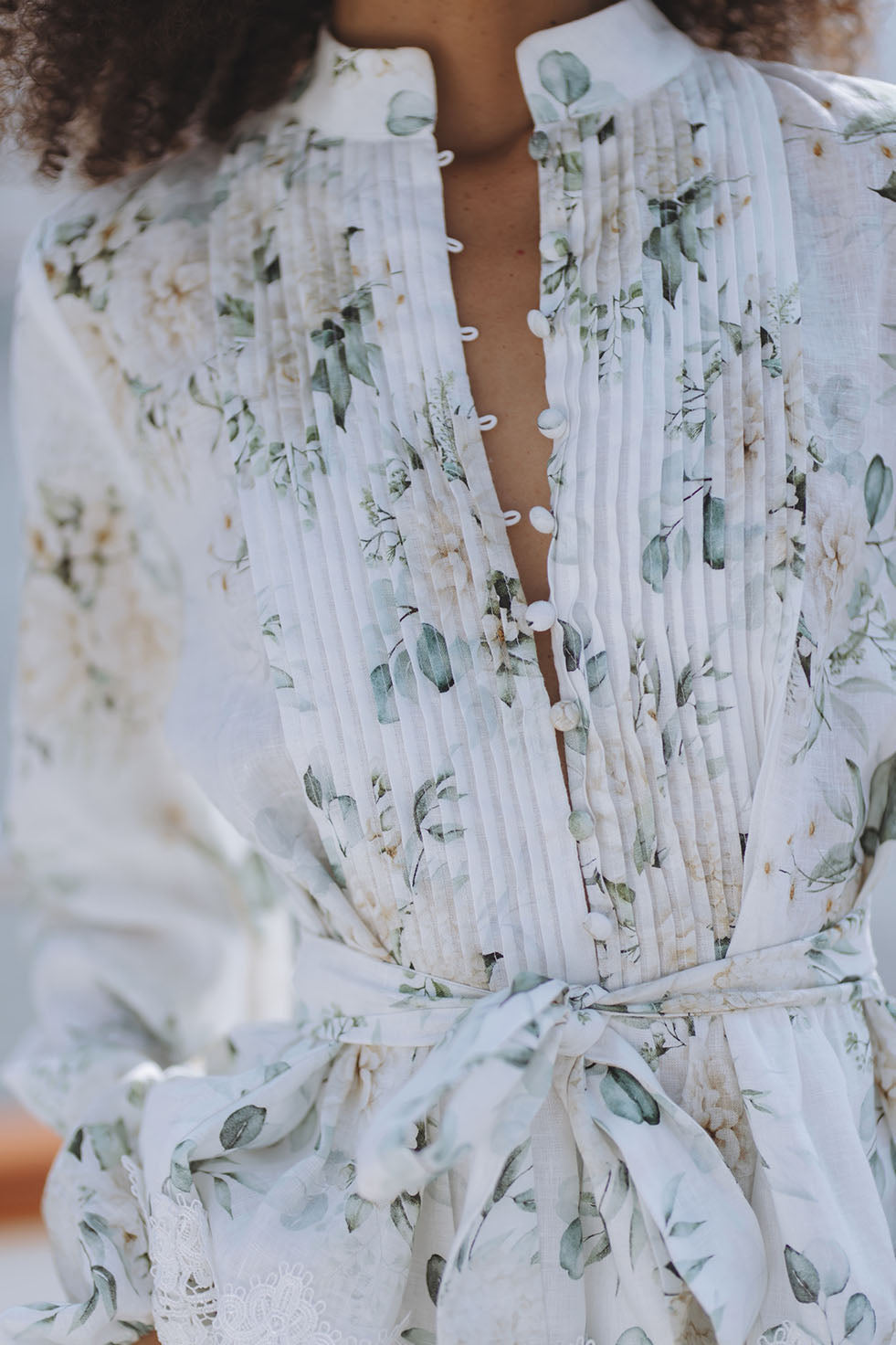 AURELIE LINEN MINI DRESS - MINT ROSE