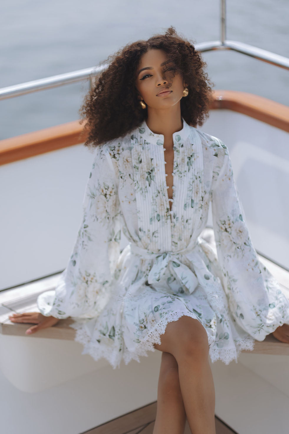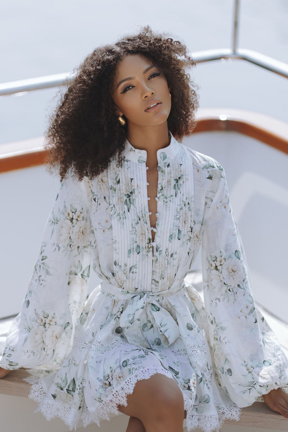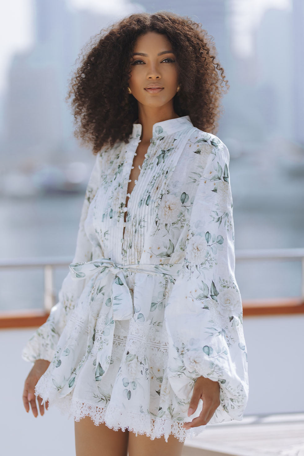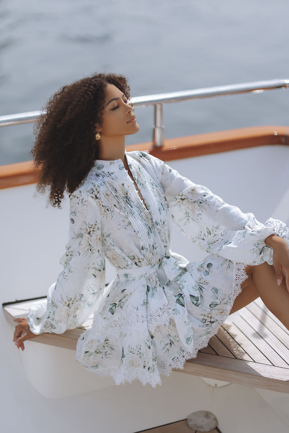 AURELIE LINEN MINI DRESS - MINT ROSE