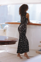 DARCY SATIN MAXI DRESS - BLACK/IVORY POLKA