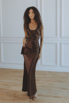 ELIZA SATIN MAXI SKIRT - CHOCOLATE