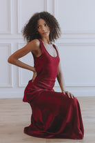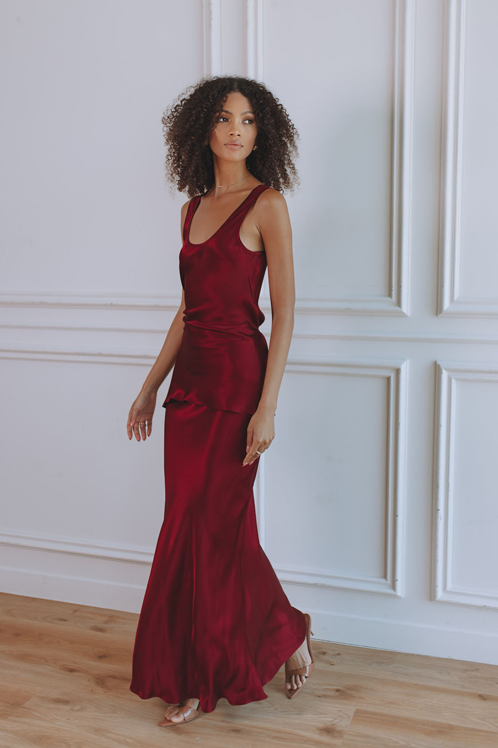 ELIZA SCOOP NECK SATIN TOP - BURGUNDY