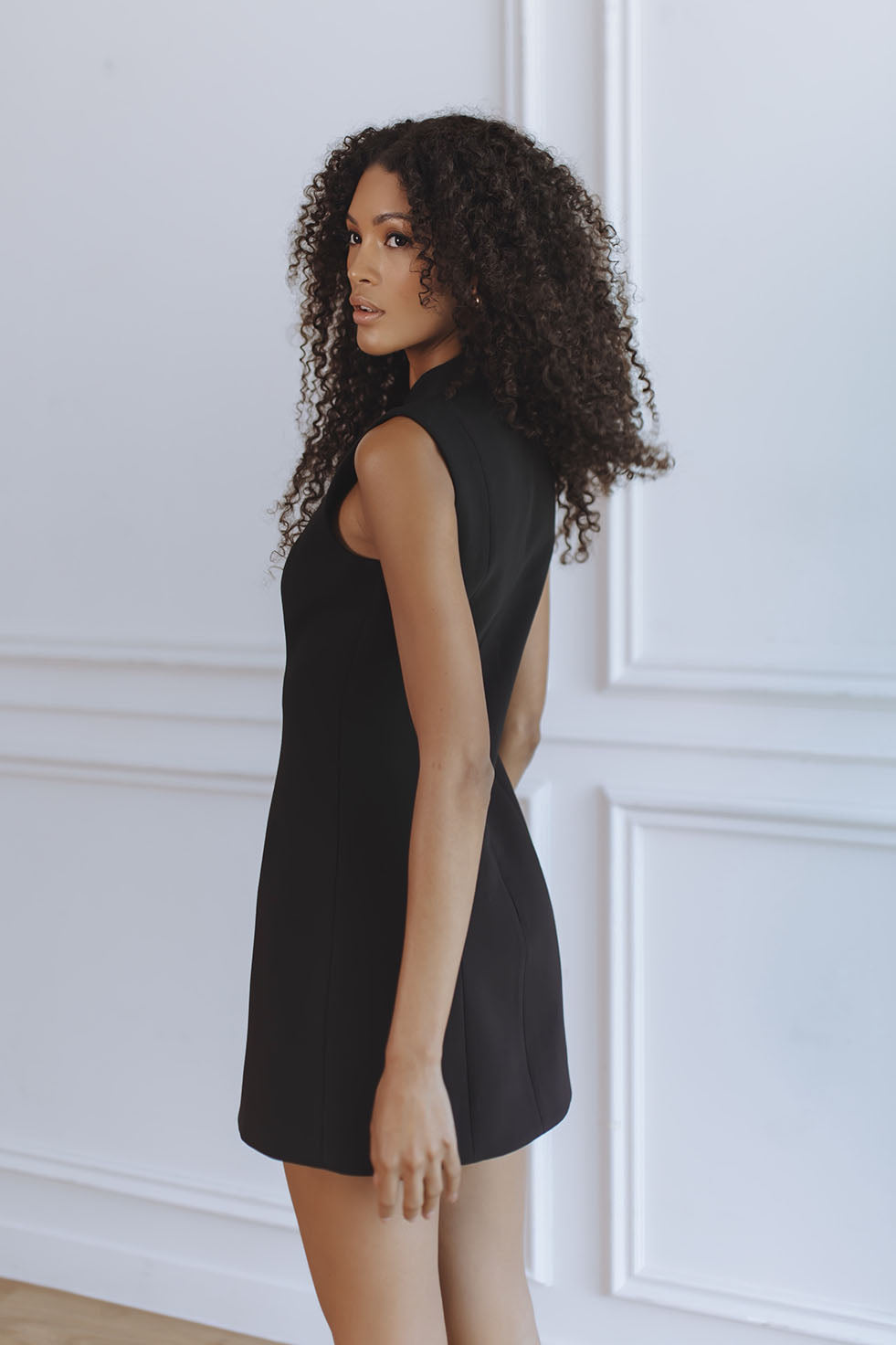 Classic yet striking, this black mini transitions effortlessly from evening occasions to elevated nights out, making it a versatile staple in any refined wardrobe.