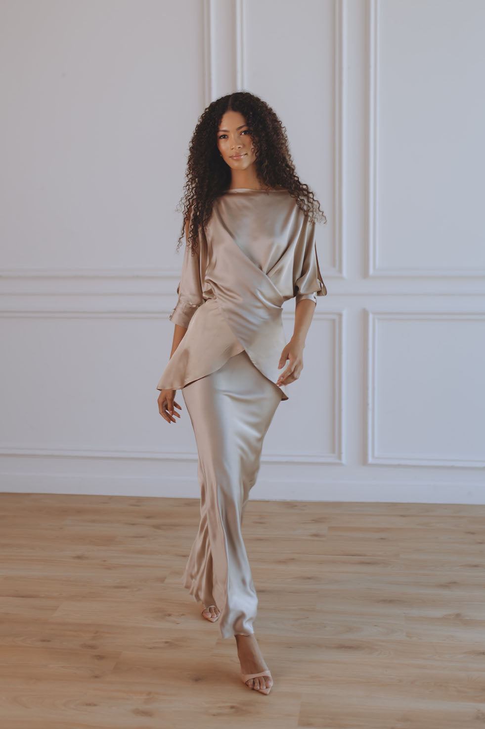 MARCY SATIN BLOUSE - CHAMPAGNE