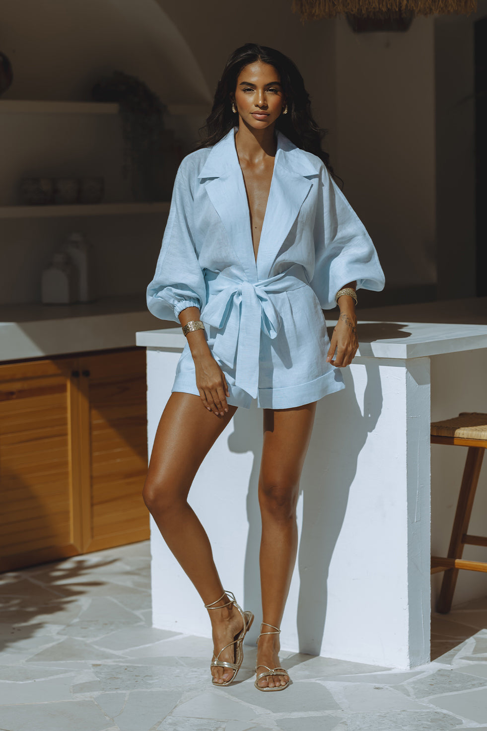 MAXIE LINEN PLAYSUIT - SKY BLUE