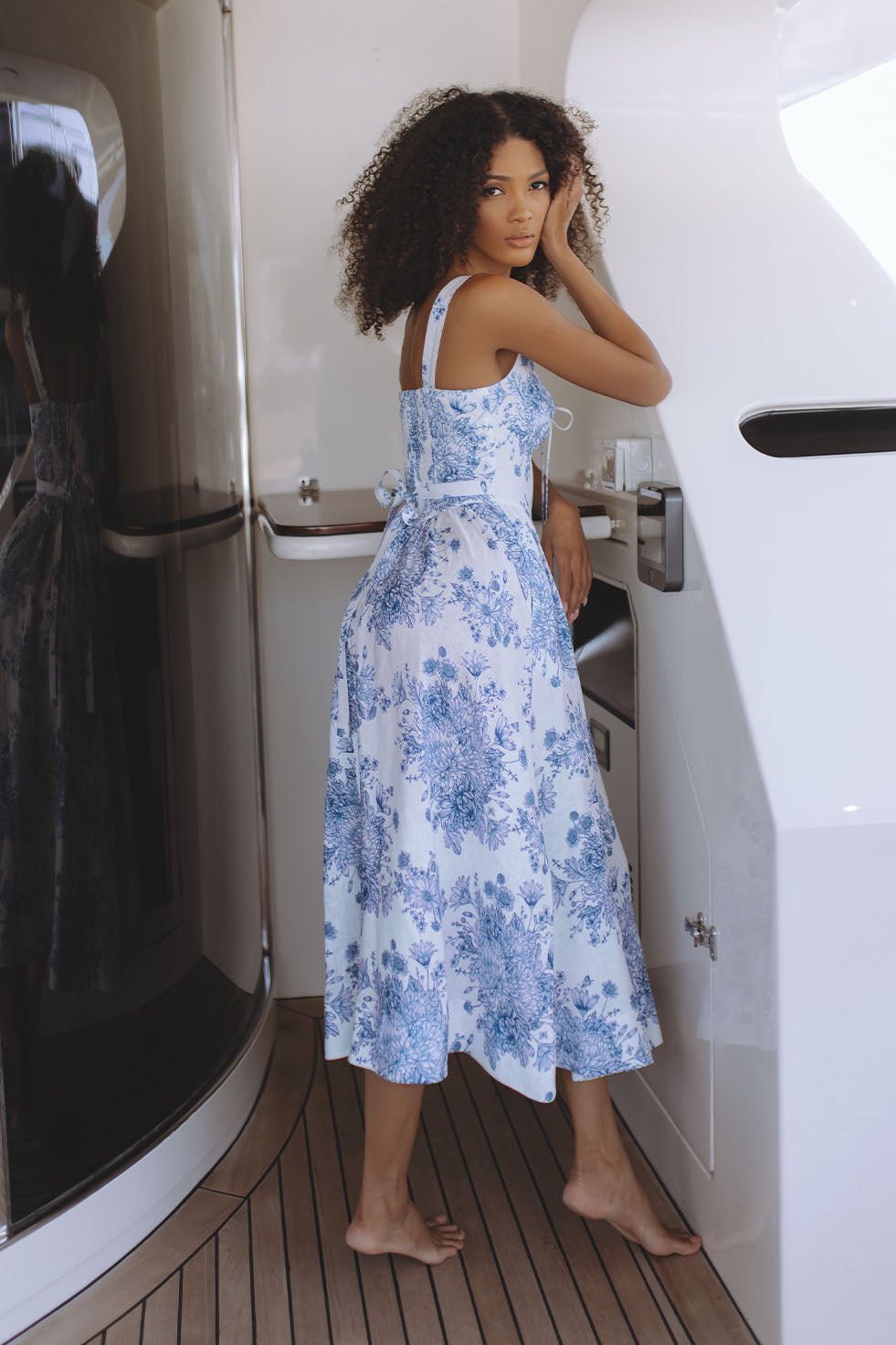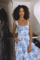MILAN LINEN MIDI DRESS - AZURE WHISPER