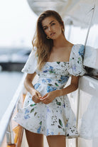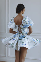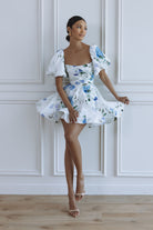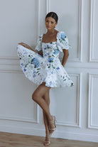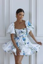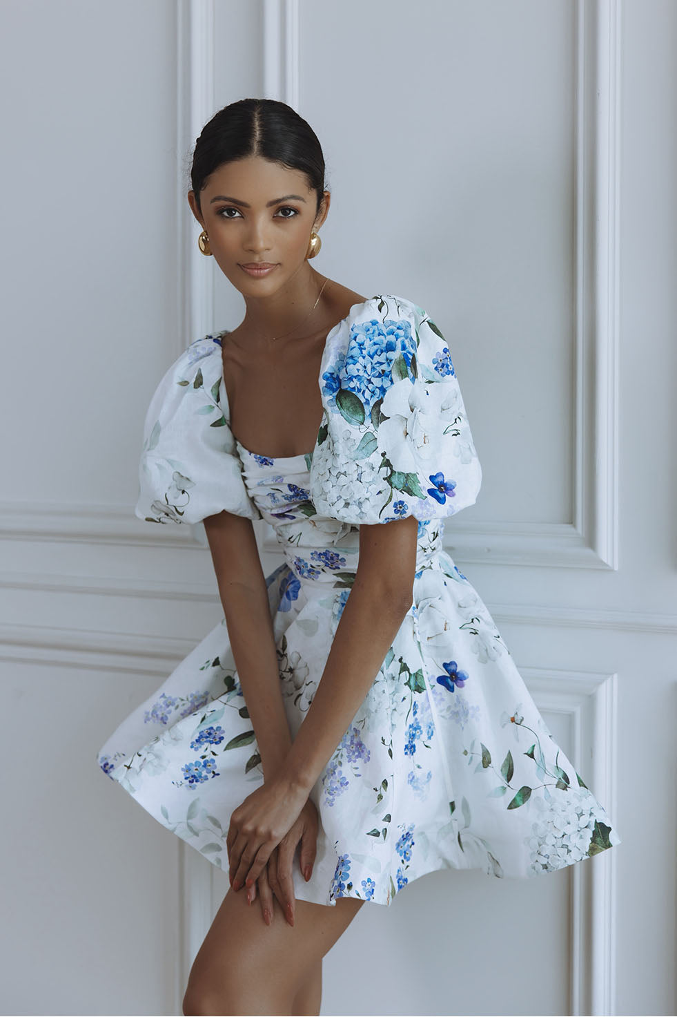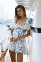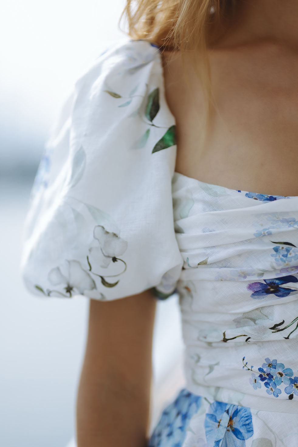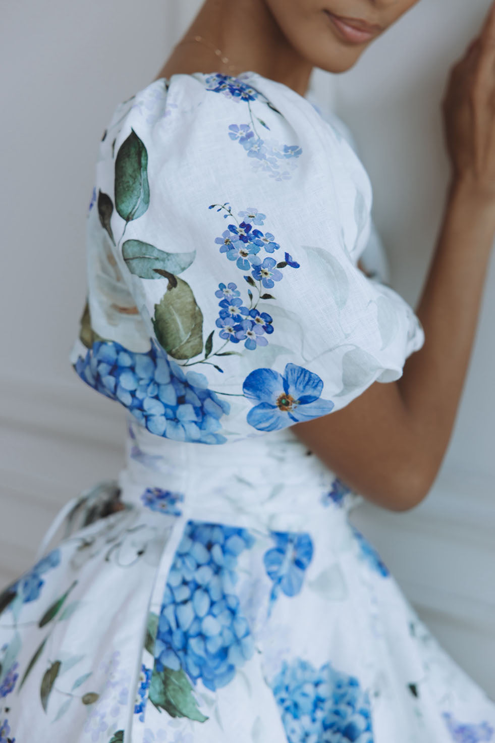 MIMI LINEN MINI DRESS - JARDIN BLEU