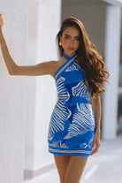 RILEIGH HALTER CUT OUT MINI DRESS - SHELLIE BLUE