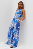 RILEIGH WIDE LEG PALAZZO PANTS - SHELLIE BLUE