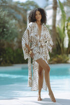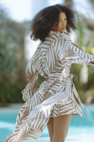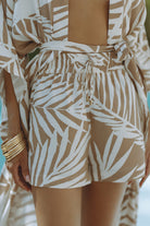 Slip into island ease with the Sienna Kimono Set in Sand Palm. Featuring a soft, breezy silhouette with bold tropical print, this lightweight kimono flows effortlessly with every step. The matching drawstring shorts complete the look—perfectly balancing comfort and chic. With its flattering tie waist and billowy sleeves, it’s your ultimate resort-ready statement. Ideal for poolside lounging or golden hour escapes.
