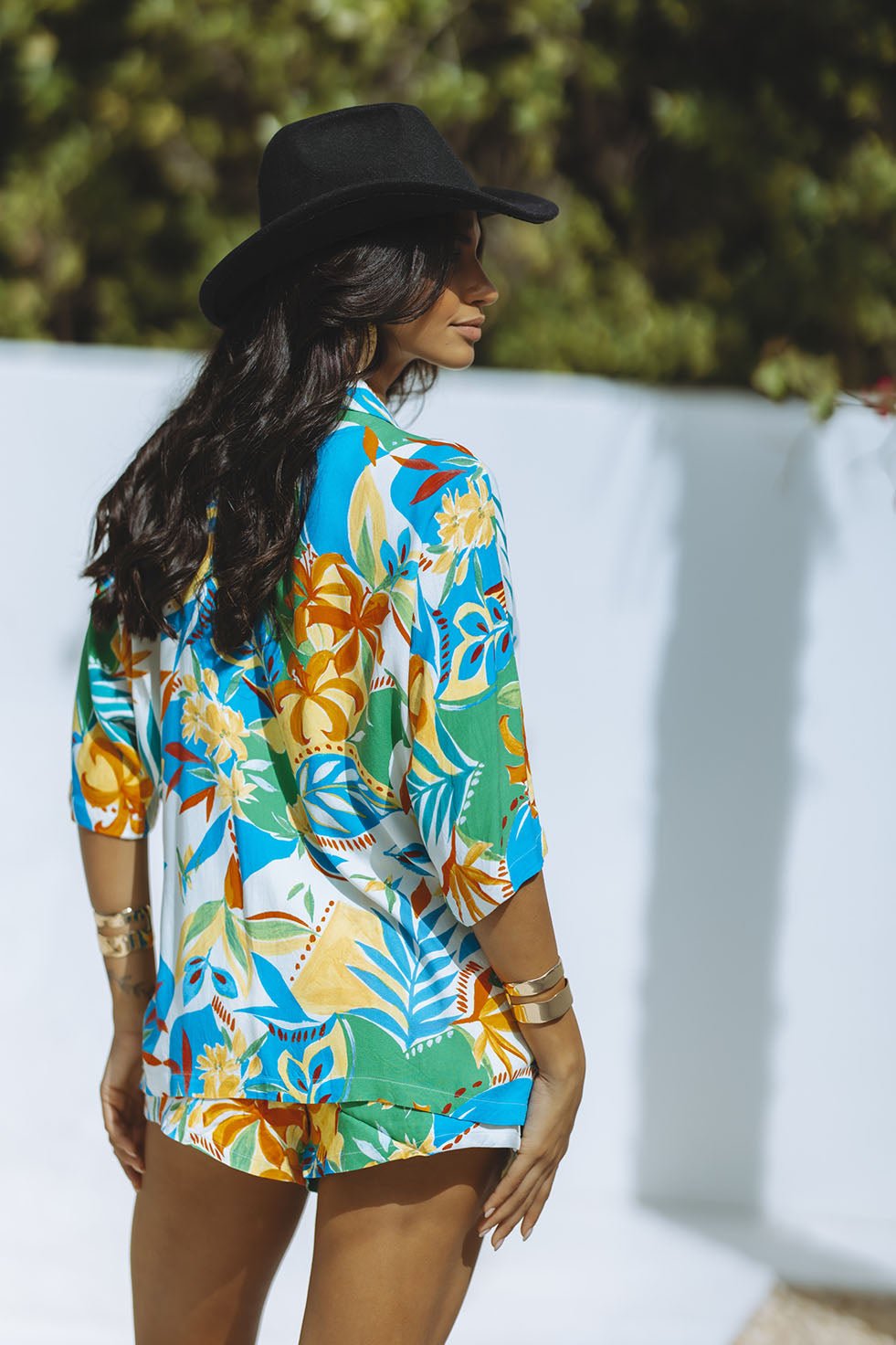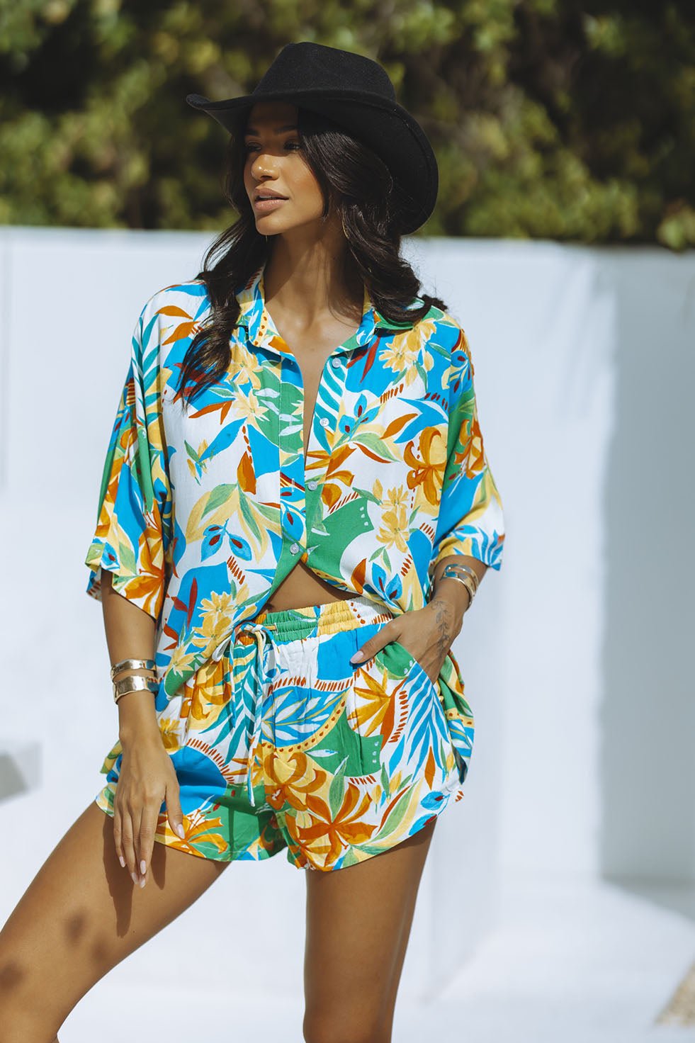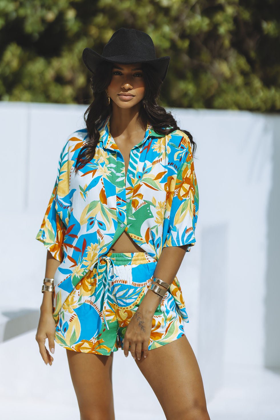 Upgrade your road trip wardrobe with these shorts. Designed with a relaxed fit and mini length, these shorts offer ultimate comfort. The elastic waist band with drawstring allows for a customizable fit, while side pockets offer convenience. Made with a breathable cotton and rayon blend, these shorts are perfect for any long day ahead. Complete the look with the matching Venus shirt.